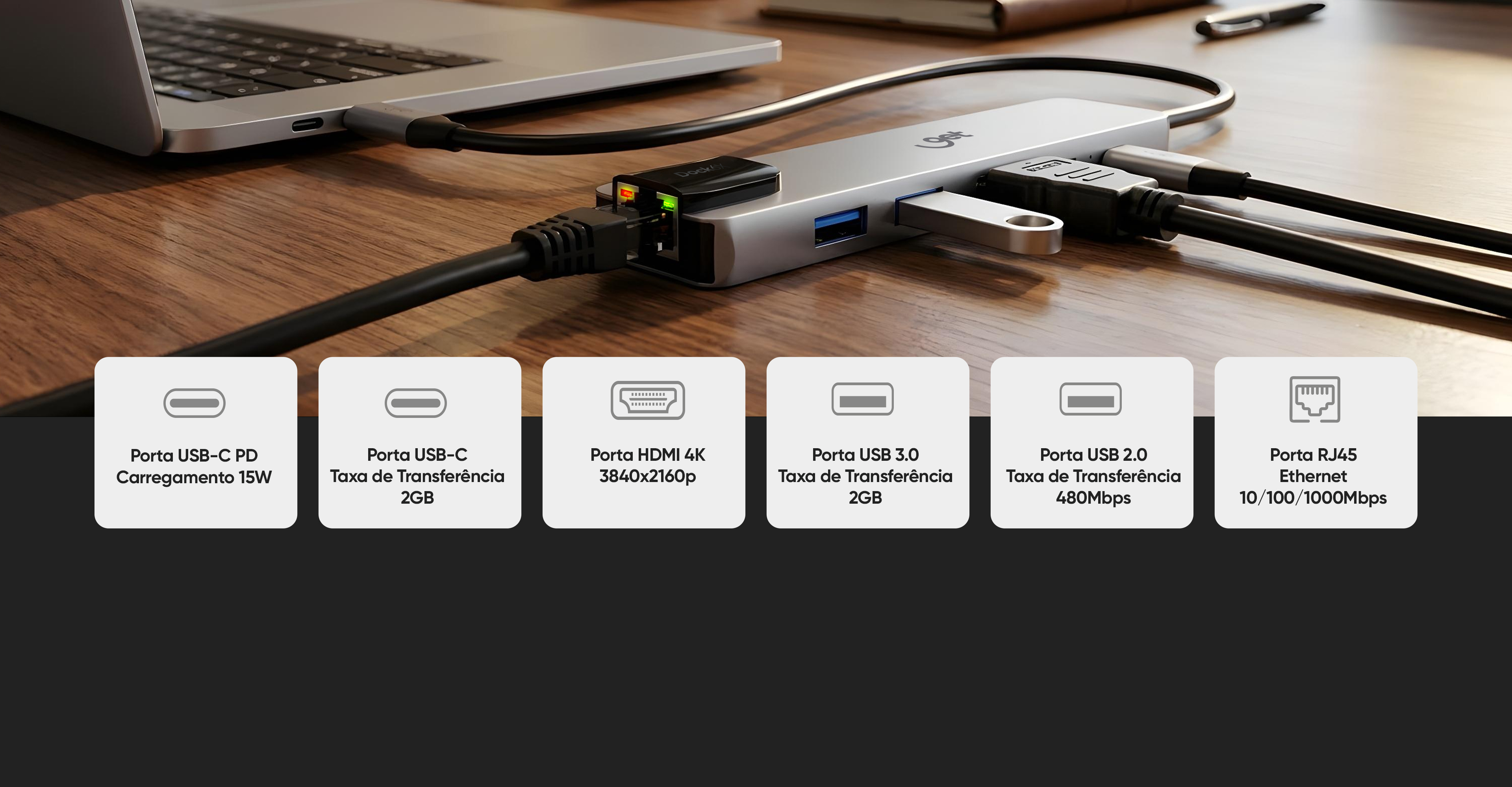 HUB ADAPTADOR USB-C DOCK 6X, mais portas, mais agilidade.
