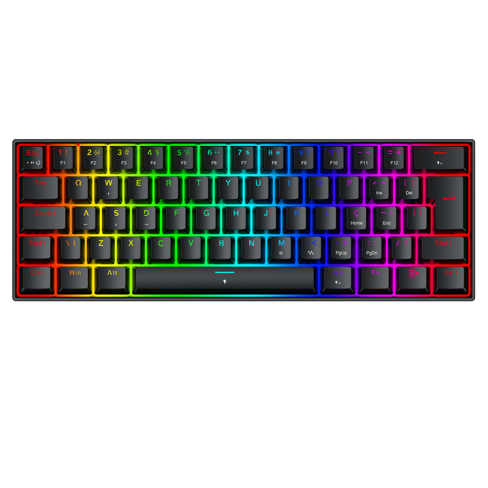 - Para os gamers que procuram deixar o máximo de espaço possível sobre a mesa, o Redragon Fizz vem no layout compacto 60%